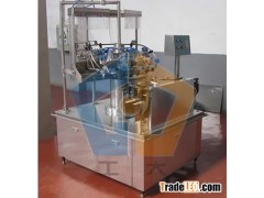 Conveyor belt will put needed cleaning bottles into the bottle screw , due to the bottle inputting screw and star wheel catch plate are continuously operating in-phase which will synchronously convey the needed cleaning bottles to the center transferring manipulator , and the manipulator along with the rotary table are spraying and washing the needed cleaning bottles , it will revert into the start-off state after compeleted , then the bottle outputting star wheel catch plate makes the cleaned bottle out , so the whole process is completed .